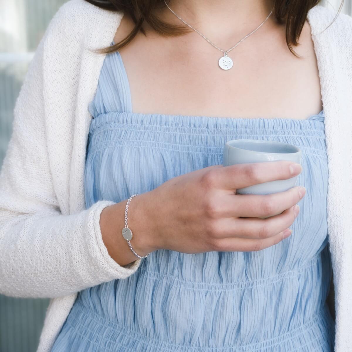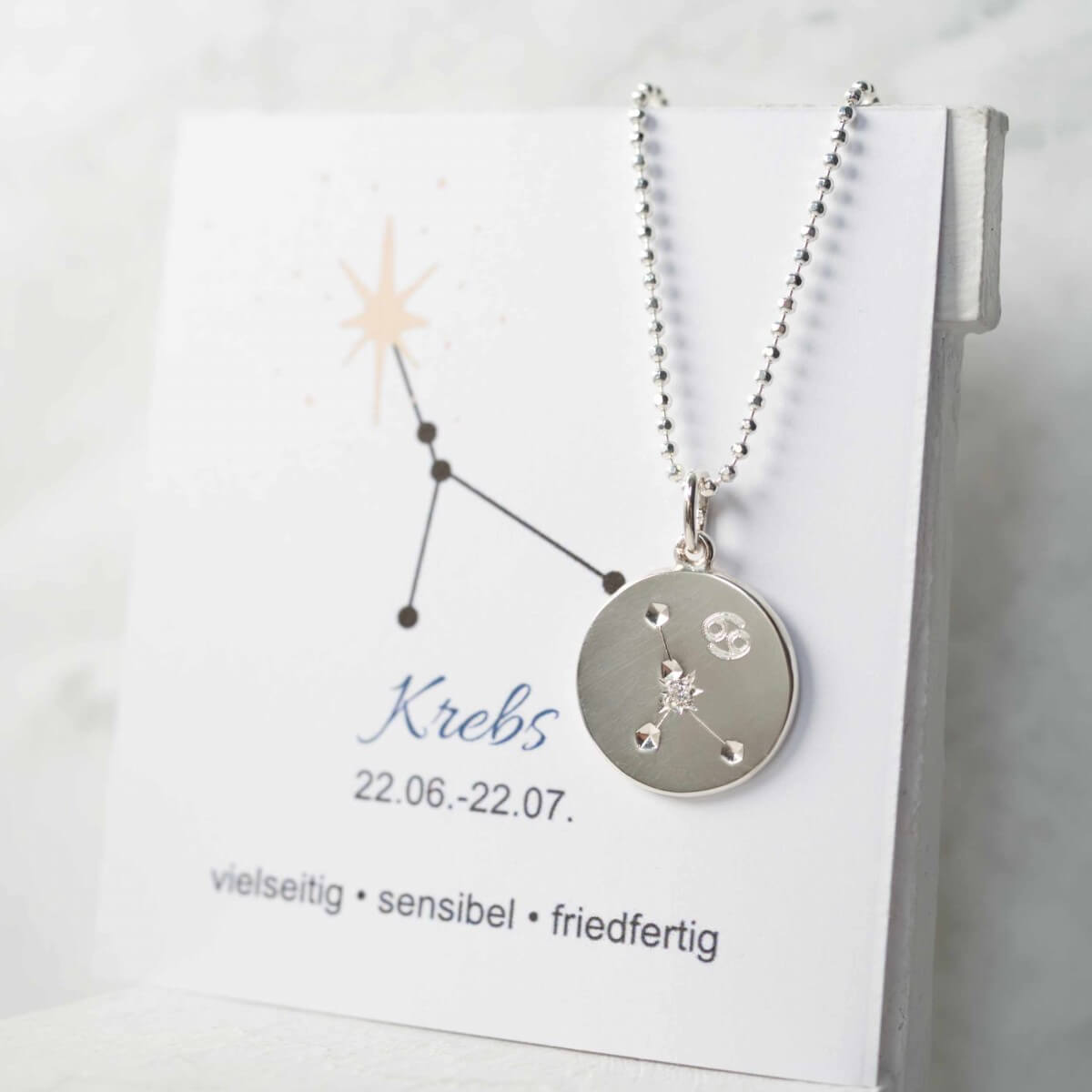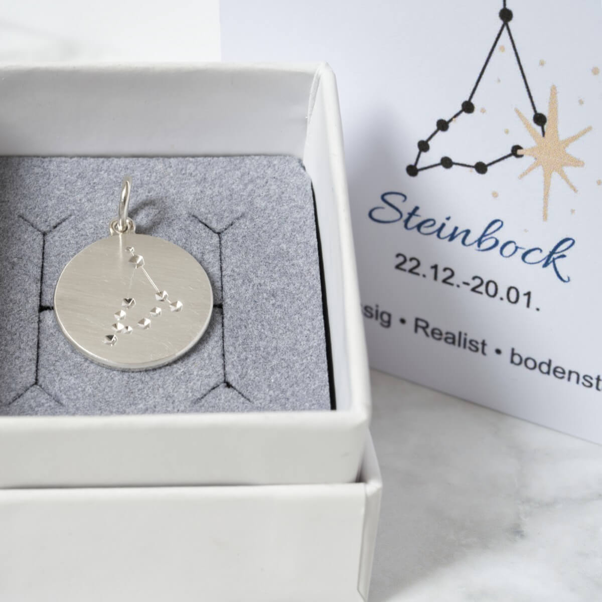 Sternzeichen-Anhänger mit eingeprägten Sternen. Diese werden von Hand mit einem Punzen eingeschlagen. So fällt jeder Anhänger immer etwas anders aus.