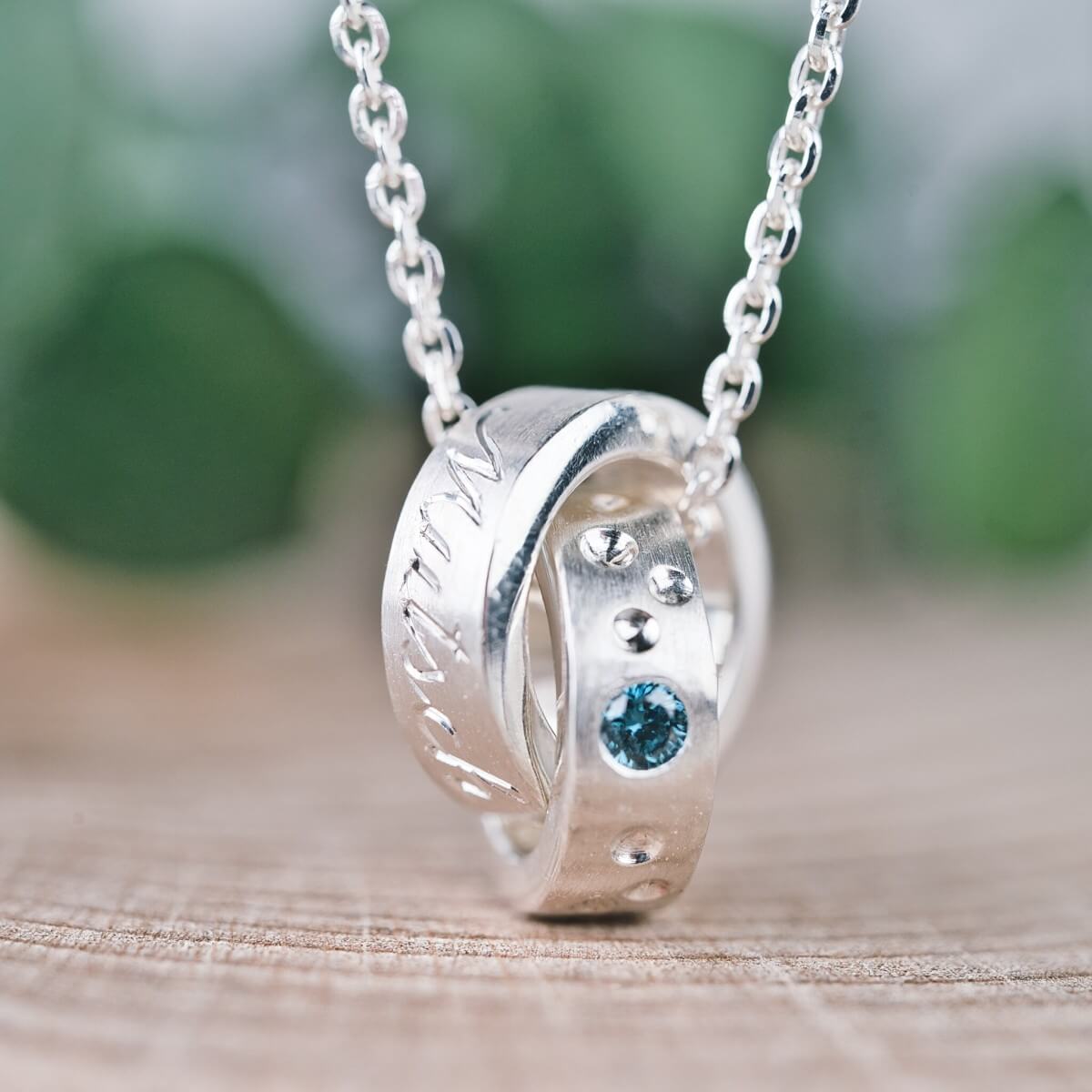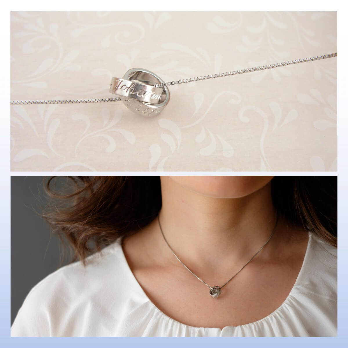 Kleine verschlungene Ringe, die die Unendlichkeit symbolisieren. Mit persönlicher Gravur sind sie eine Erinnerung an einen besonderen Anlass oder Menschen.. Die Ringe sind so klein, dass sie nur von Hand graviert werden können.