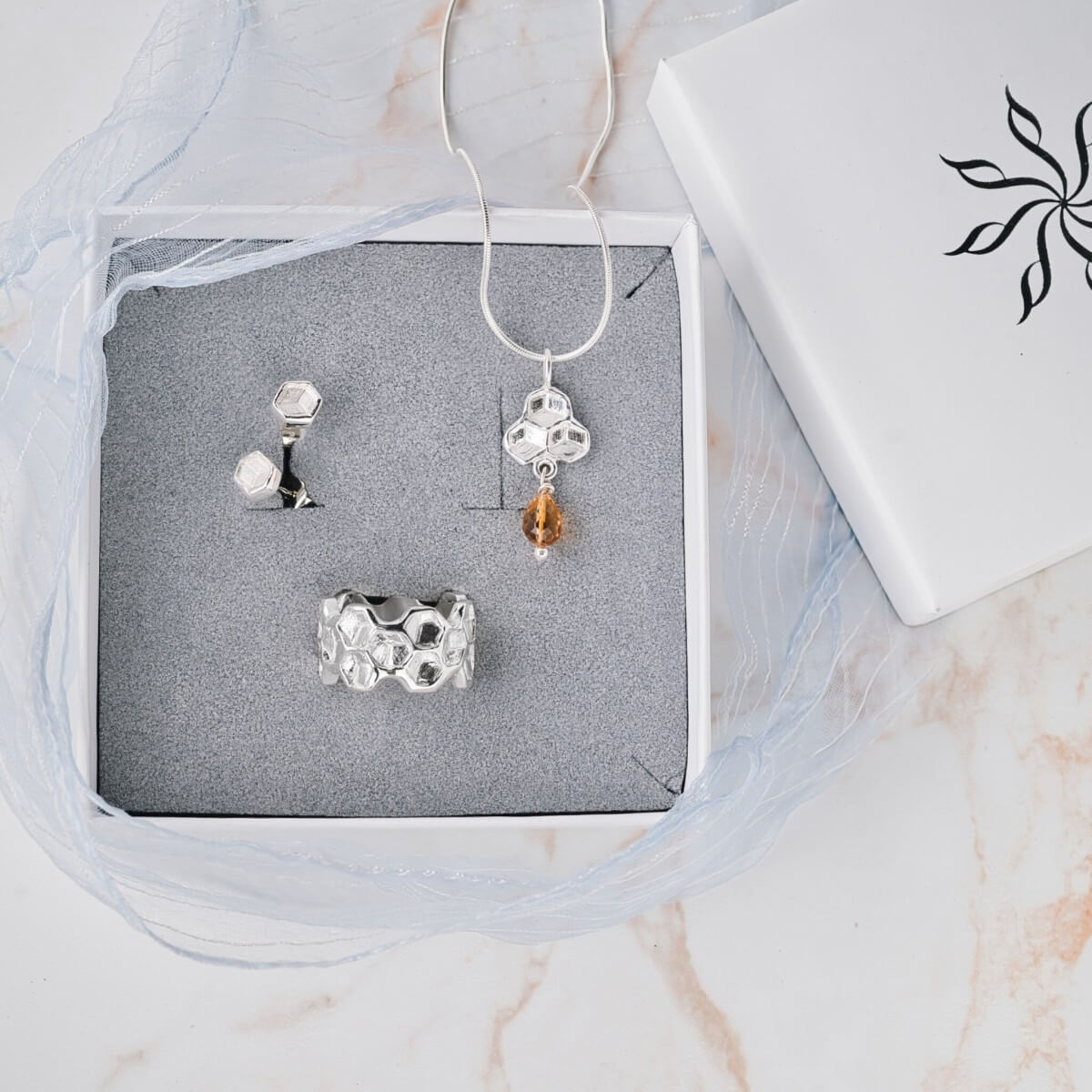 Wabenwachs, gegossen in 935/- Silber. Manche Variationen entstehen zusammen mit dem Kunden.